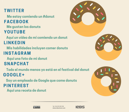 Esta imagen que compartimos es conocida como “la metáfora del donut” y explica de manera sencilla qué tipo de contenidos se comparte en cada red social: